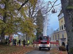 Auch die Teleskopmastbühne der FF Zwettl an der Rodl führte eine intensive Brandbekämpfung im Dachbereich durch.