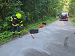 Im Anschluss begannen wir mit dem Binden der gesamten Treibstoffspur zwischen dem Tischlerberg und der B38 im Bereich Hagleithen. Auf einer Strecke von rund 4 Kilometern musste die Verunreinigung gebunden und anschließend zusammengekehrt werden.