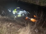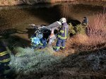 Besonders herausfordernd war, dass das Fahrzeug über eine extrem steile Böschung in den Teich katapultiert worden war. Eine schwer verletzte Person musste über dieses sehr steile Gelände gerettet werden.